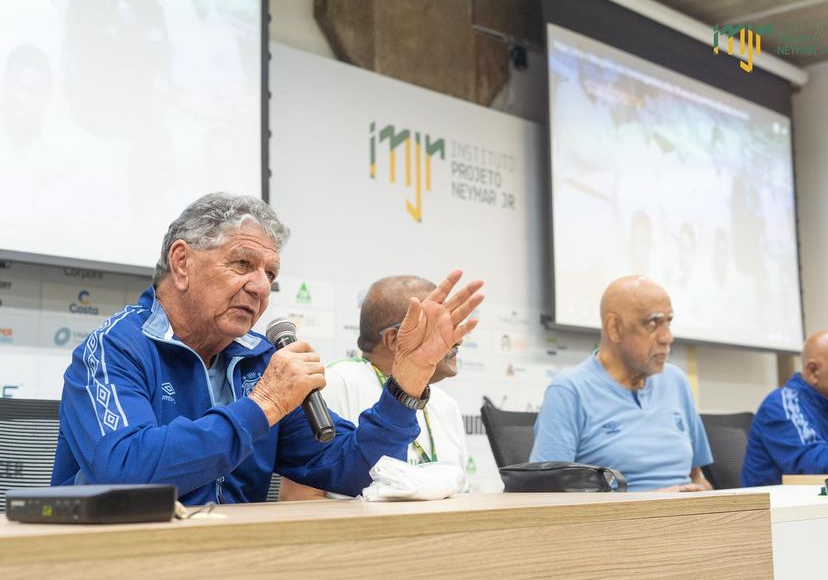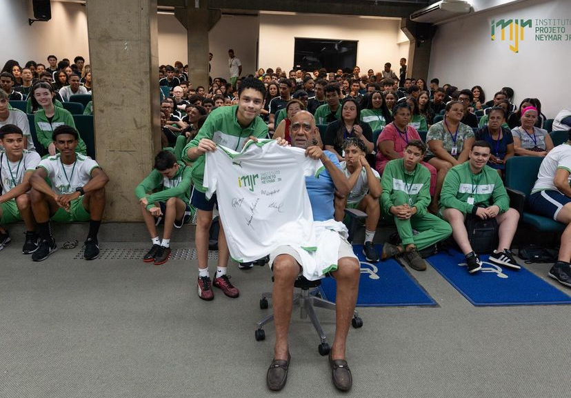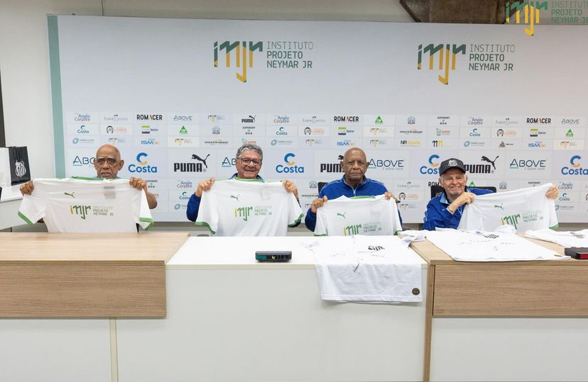 “Ontem foi um dia especial no Instituto Neymar Jr.! Tivemos a honra de receber ídolos eternos do Santos. Esses craques lendários compartilharam suas histórias inspiradoras com os adolescentes do projeto em uma conversa cheia de memórias e lições no nosso auditório. Eles relembraram os momentos de glória no futebol e destacaram a importância de disciplina, dedicação e foco nos estudos e nas atividades esportivas para o crescimento pessoal e profissional. Foi um encontro inesquecível, repleto de aprendizado e emoção. Agradecemos a visita! Foi um privilégio para nossos jovens recebê-los aqui 💚”, publicou o Instituto Neymar Jr nas redes.
