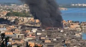 Incêndio na zona oeste de Santos provocou o cancelamento do anúncio da aprovação do projeto da Arena (Crédito: Reprodução)