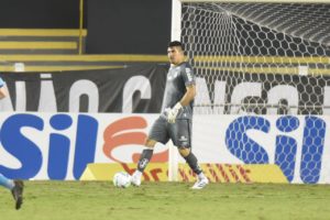 João Paulo pouco foi exigido no jogo contra o Atlético Goianiense. E no gol dos goianos, nada podia fazer (Crédito: Ivan Storti/Santos FC)