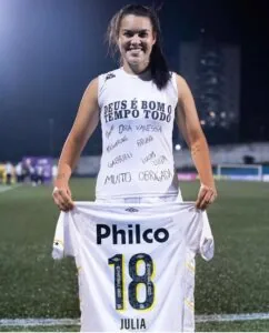 “Foram 10 meses para esse momento. Ficar longe dos gramados foi um processo doloroso e complicado. Hoje, graças a Deus pude reestrear com o Manto Sagrado após um longo período. Estou muito feliz pelos três pontos e motivada para continuar a temporada. Deixo aqui o meu agradecimento a todos que me ajudaram durante esse tempo. Atletas, comissão, staff, amigos…Um agradecimento especial a quem foi meu pilar, que segurou a minha mão quando mais precisei, nos momentos mais difíceis. Minha família, que mesmo distante, se fez presente em todo momento, cada detalhe do processo. Mauro Martinelli que desde o momento da operação se fez presente no processo. Vanessa Resende, você desde o momento da cirurgia até o final da recuperação, você esteve do meu lado, sou muito grata por isso, você é única, nunca esquecerei do que fez por mim. Katherinne Ferro você por fazer parte desse processo intenso dia a dia, e comemorando as minhas pequenas conquistas, chorando comigo e me fazendo uma atleta melhor. Lucas Wasem você chegou no final da recuperação, mas se fez presente em cada detalhe, principalmente na transição, temos uma amizade de anos e você foi especial nisso. Luiza Garutti minha psicóloga que nos momentos mais difíceis esteve do meu lado, me aconselhando, que em nenhum momento me deixou desistir de viver tudo isso. E por fim, elas! Bruna Balbino e Gabi Moreira. Não sei nem como agradecer vocês, o quanto fizeram por mim e ainda fazem. Mudaram a vida de vocês pra estarem do meu lado dia após dia, choro após choro, angústias, mas vocês estavam lá, fazendo um papel como se fossem da minha família, me cuidando e sendo meu braço direito. Tô muito feliz! O processo fere, mas o propósito cura. Deus é bom o tempo todo! 23/08”