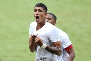 Lucas Barbosa na comemoração do gol (Crédito: Marlon Costa)