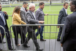 O presidente Luís Inácio Lula da Silva compareceu ao velório do Rei Pelé, nesta manhã de terça-feira (3), na Vila Belmiro. Acompanhado da primeira-dama Rosângela Lula da Silva, popular Janja, e Márcio França, ministro de Portos e Aeroportos e torcedor do Santos, o presidente participou da missa final.