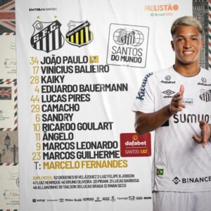 Assim, o Santos está escalado com: João Paulo; Vinicius Balieiro, Kaiky, Eduardo Bauermann e Lucas Pires; Camacho, Sandry e Ricardo Goulart; Ângelo, Marcos Leonardo e Marcos Guilherme.