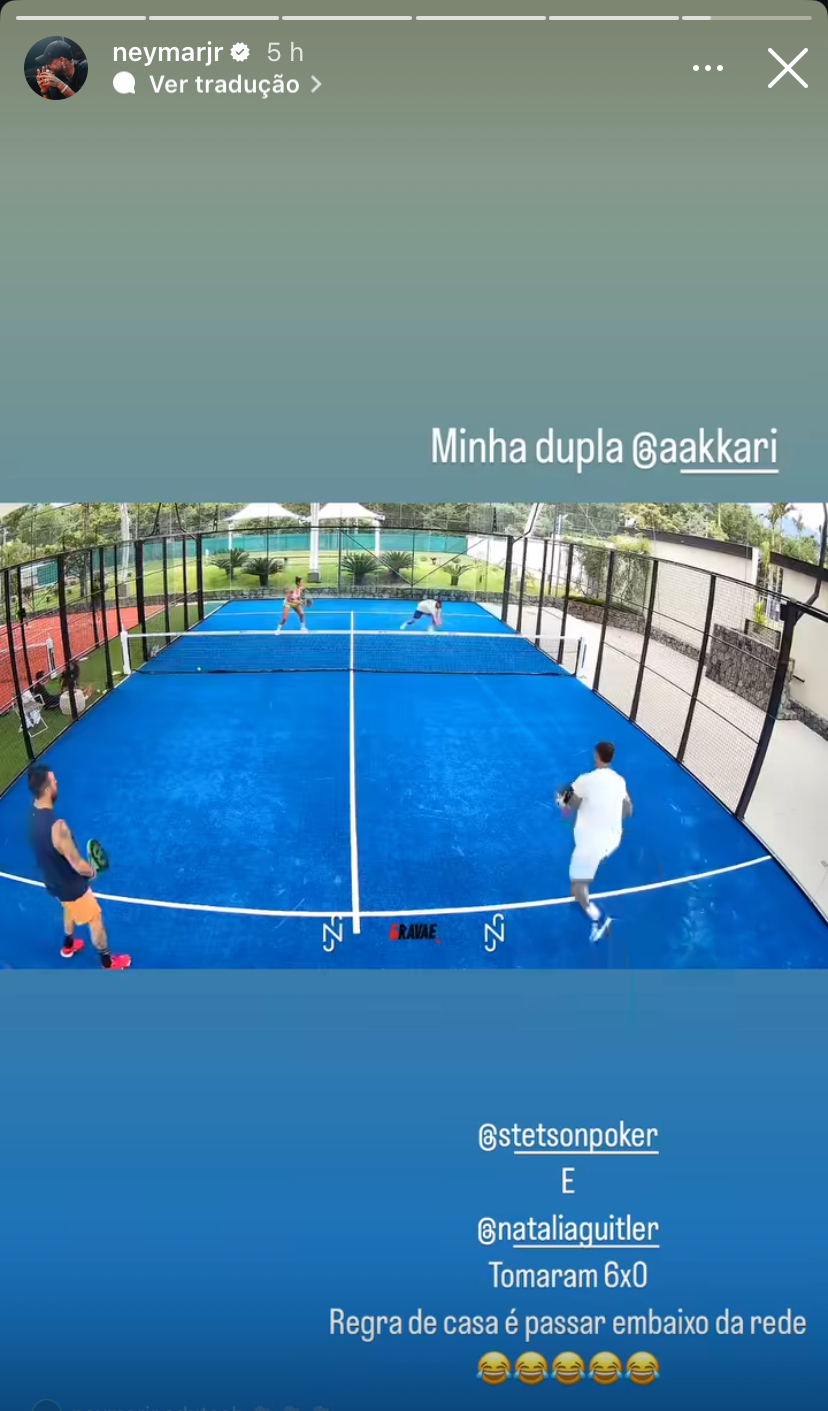 O craque ainda esteve com Natália Guitler, atleta de futvôlei, e com André Akkari e Stetson Fraiha, jogadores de Poker, em que jogaram Paddle Tennis.