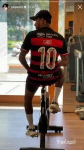 ídolo do Santos, o meia-atacante Neymar publicou uma foto com a camisa do Flamengo, personalizada com o nome de Gabigol, nos stories do Instagram e agitou as redes sociais. O jogador aparece de costas na foto sem mostrar o escudo do time carioca praticando exercício física na ‘bike’ e Gabriel Barbosa, também revelado pelo Peixe, repostou elogiando ‘Combinou muito’.