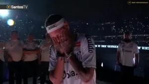 Neymar chora na volta ao Santos (Crédito: Reprodução)