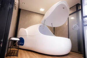 Com tecnologia 100% nacional, a cápsula da Acqua Float proporciona um ambiente de privação sensorial e gravidade zero, onde o atleta flutua em água aquecida com sal de magnésio, promovendo redução de tensões musculares, alívio de dores pós-treino, relaxamento profundo e recuperação acelerada, complementando outras ferramentas de suporte à performance já adotadas pelo Santos FC.