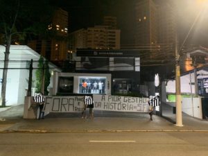 Na Vila Belmiro, os torcedores levaram faixas perguntando “Cadê o presidente?” e pedindo respeito ao Santos. Gritos também foram ouvidos pedindo a renúncia do presidente. “Se não renunciar, o pau vai quebrar”.