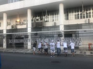 Segue o protesto do lado de fora da Vila Belmiro pic.twitter.com/OMuSJp2k6s