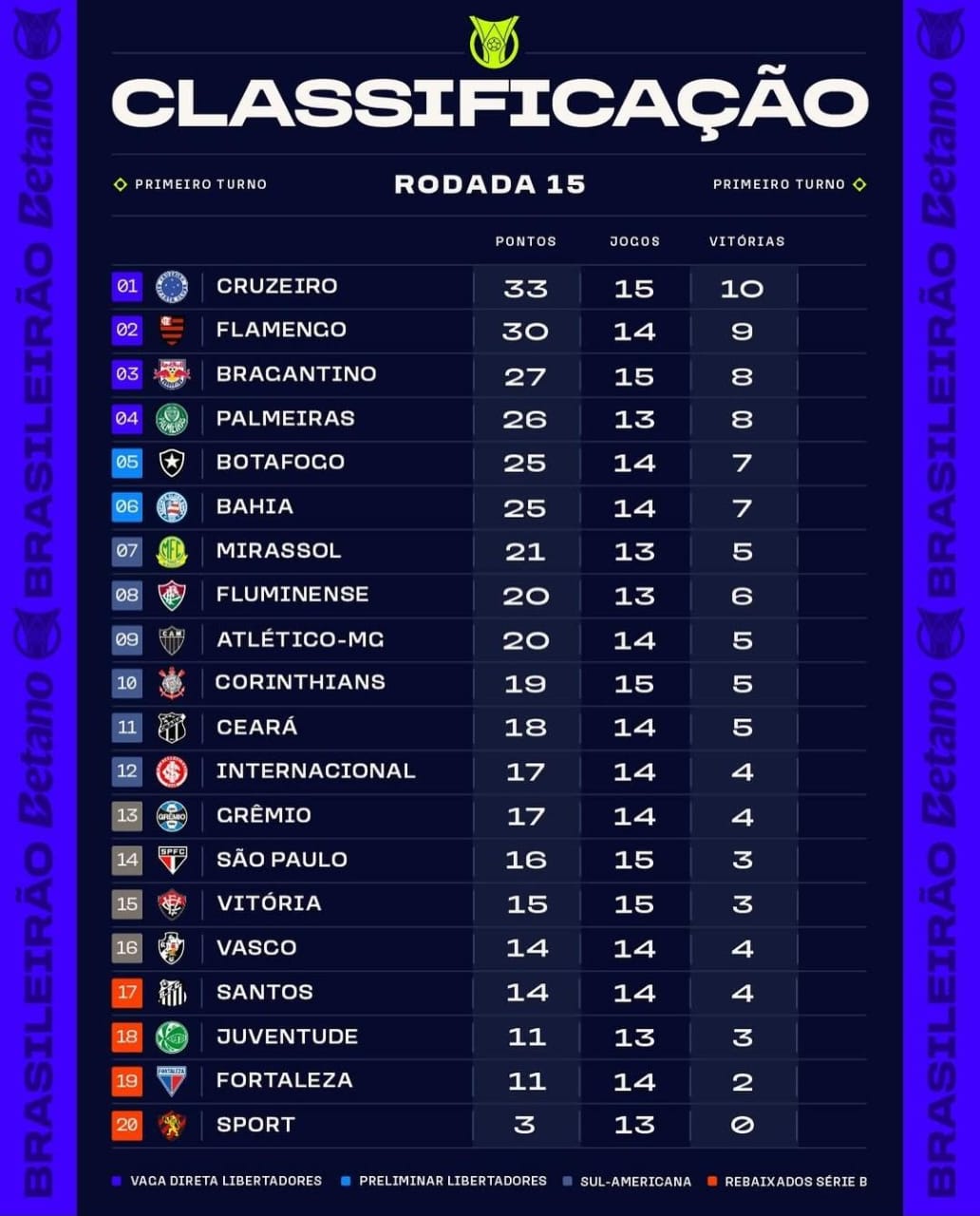 Confira a classificação após a 15ª rodada do Brasileirão [...]