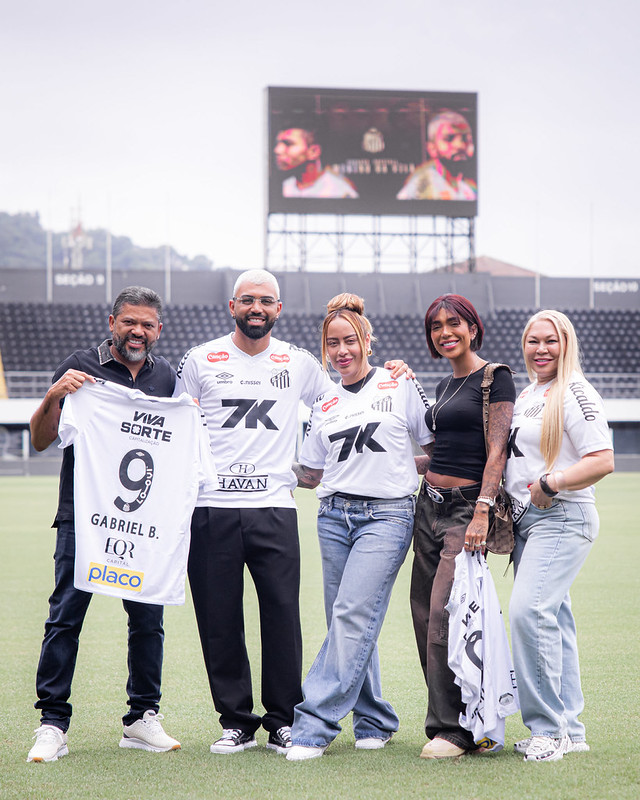 O atacante Gabigol e os familiares no gramado da [...]