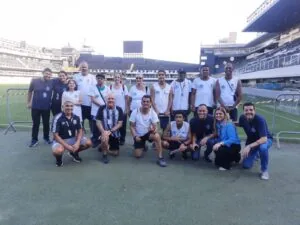 Os alunos do Lar das Moças Cegas (LMC), acompanhados de orientadores e professores, conheceram o Memorial das Conquistas e fizeram um grande tour pela Vila Belmiro, instruídos pelos guias do museu santista nesta quinta-feira (23). A assistente de direção pedagógica do Lar, Fernanda Carvalho, salientou o impacto que esse momento pode ocasionar na vida deles.