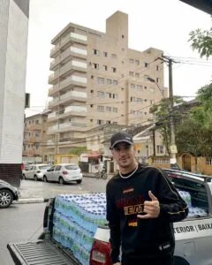 O atacante Pedrinho doou 120 fardos de água para as vítimas das enchentes no Rio Grande do Sul. O camisa 7 levou a doação na secretaria social do clube, local que vem fazendo arrecadações e enviando para os locais afetados. Se recuperando de incômodo no púbis, ele está de fora do confronto do Santos contra a Ponte Preta nesta quarta-feira (15).