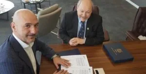 O presidente José Carlos Peres e o CEO do Bolton Holding Group, Roberto Diomedi, em encontro nos Emirados Árabes (Crédito: Reprodução)