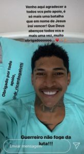 “Venho aqui agradecer a todos vocês pelo apoio, é só mais uma batalha que em nome de Jesus irei vencer! Que Deus abençoe todos vocês mais uma vez, muito obrigadooooo…”, escreveu o atleta, que colocou ainda: Guerreiro não foge da luta!!!