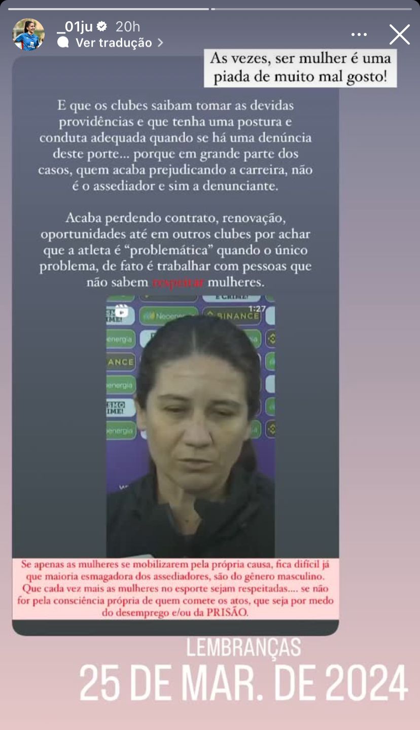 Porém, depois do anúncio do retorno do treinador na tarde desta terça-feira (02), jogadoras se pronunciaram nas redes sociais. Nos comentários da publicação do clube no Instagram, a volante Formiga e a meia-atacante Andressa Alves, lamentaram a situação. A ex-jogadora Francielle e outras atletas até do Corinthians, rival do Peixe, comentaram sobre o caso.