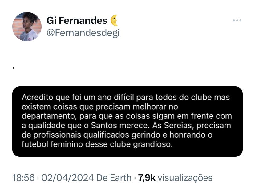 A goleira Jully, a zagueira Kaká e a lateral Gi Fernandes, que estavam no elenco santista em 2023, também publicaram nas redes.