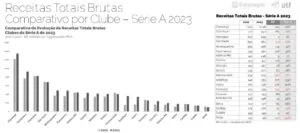 De acordo com o relatório, o Flamengo foi o clube com a maior receita na temporada, com um total de R$ 1,3 bilhão de arrecadação. O clube carioca foi o único a superar a marca de R$ 1 bi em receitas. O segundo colocado na lista, o Corinthians, arrecadou R$ 932 milhões.
