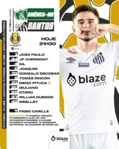 O Santos está escalado para enfrentar o América-MG nesta sexta-feira pela sétima rodada da Série B do Campeonato Brasileiro. Para este jogo, o técnico Fábio Carille mantém a base do time que venceu na rodada passada, porém, com com uma novidade.