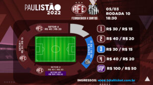A Ferroviária liberou a venda de ingressos para a partida contra o Santos neste sábado, às 18h30min, na Arena Fonte Luminosa, em Araraquara, pela décima rodada do Campeonato Paulista. O valor da inteira é de R$ 30 e a meia R$ 15 na Arquibancada 3, no setor visitante. Os tickets podem ser adquiridos pelo site Total Ticket. A entrada será feita pelo portão visitante, próximo ao ginásio Gigantão, na Avenida Agrimensor João Luiz Molina Gil.