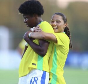 A lateral Samara e meia-atacante Evelin Bonifácio, das Sereinhas da Vila, entraram na vitória do Brasil sobre o Paraguai por 3 a 1, no Centro de Alto Rendimento do Futebol Feminino da Associação Paraguaia (CARFEM), em Ypané, pela primeira rodada da fase final do Sul-Americano Sub-20, nesta segunda-feira (16).