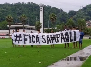 No treino da última sexta-feira, crianças foram até o CT do Peixe com faixa pedindo para o técnico permanecer no clube (Crédito: Divulgação)