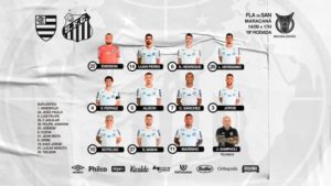 O Santos vai entrar em campo com Everson, Lucas Veríssimo, Luan Peres e Gustavo Henrique; Victor Ferraz, Alison, Carlos Sánchez e Jorge; Marinho, Sasha e Soteldo.