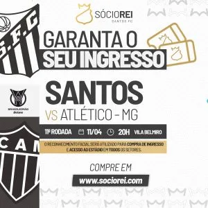 O Santos abriu a venda de ingressos para o jogo contra o Atlético Mineiro neste sábado (11), às 20 horas, na Vila Belmiro, pela 11ª rodada do Brasileirão. A Lei Estadual nº 18.159/2025, de São Paulo, garante gratuidade em eventos esportivos para crianças de até 2 anos incompletos, que devem permanecer no colo do responsável. Não há gratuidade para idosos ou pessoas com deficiência.