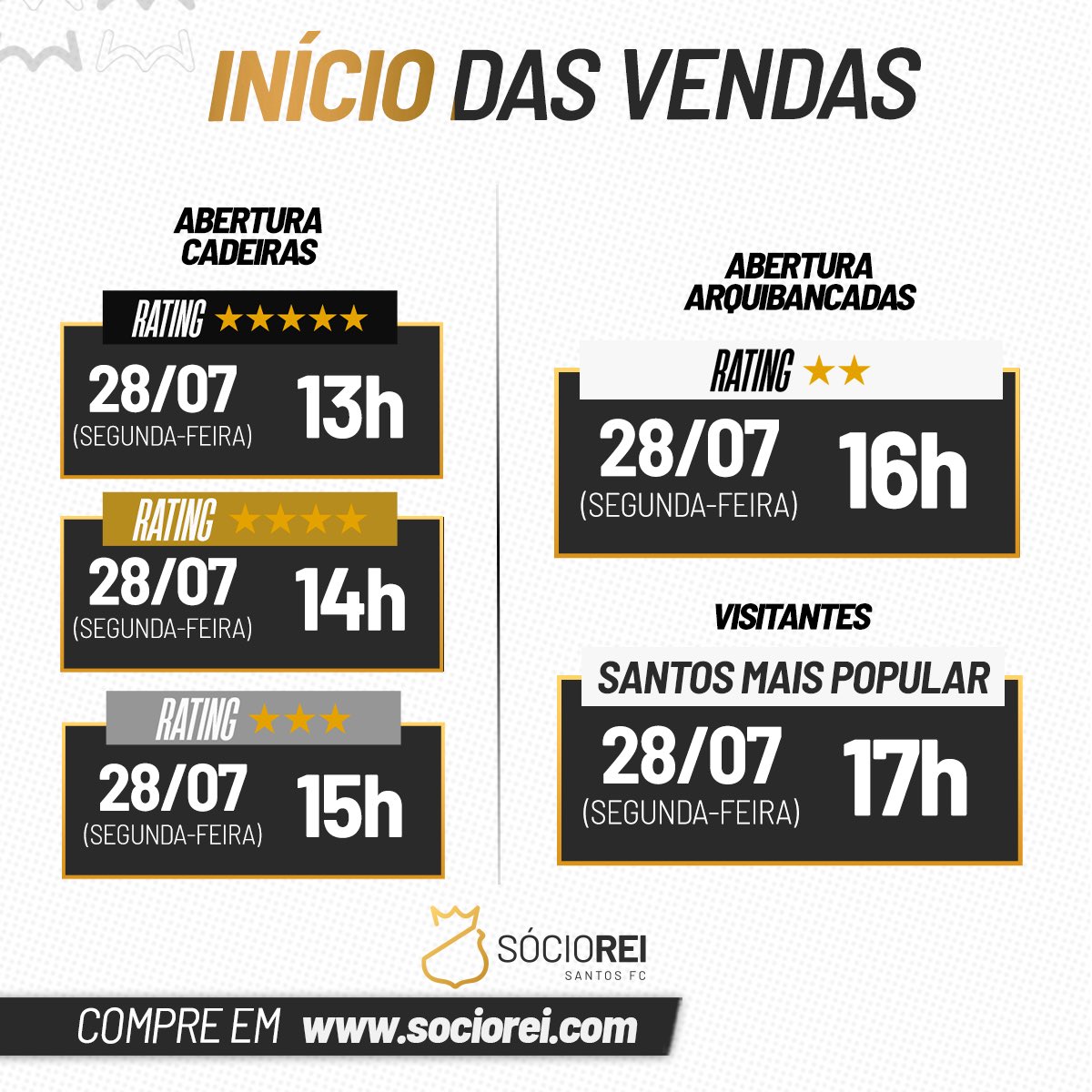 Prioridade 5: Público geral (Santos Mais Popular) – 17:00 – 28/07