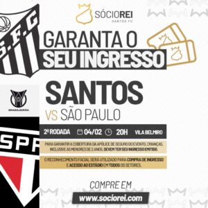 O Santos abriu a venda de ingressos para o clássico contra o São Paulo nesta quarta-feira (04), às 20 horas, na Vila Belmiro, pela segunda rodada do Brasileirão.