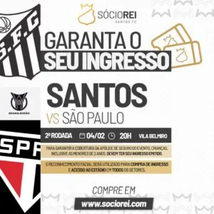 O Santos abriu a venda de ingressos para o clássico contra o São Paulo nesta quarta-feira (04), às 20 horas, na Vila Belmiro, pela segunda rodada do Brasileirão.