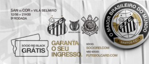 O Santos abriu na manhã desta sexta-feira a venda de ingressos para o clássico contra o Corinthians na próxima quarta-feira, às 21h30min, no estádio da Vila Belmiro, em Santos. Neste primeiro momento, a venda está liberada apenas para os sócios. A venda pela internet para não sócios começa no sábado (08), às 14 horas, e a abertura da venda física está marcada para segunda-feira (10).