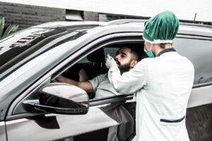 Jogadores do Santos fizeram testes de Covid dentro dos carros nesta terça-feira (Crédito: Ivan Storti/SantosFC)