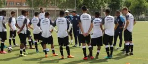 O técnico Luciano Santos conversa com a equipe Sub-17 nos preparativos para a Taça BH (Crédito: Divulgação/SantosFC)