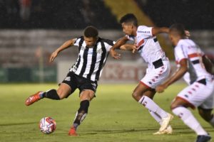 Felippe Cardoso não conseguiu superar zaga do Botafogo na derrota em Ribeirão Preto (Crédito: Ivan Storti/Santos FC)