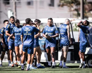 O elenco do Santos retornou aos treinos visando sequência na Série B (Crédito: Raul Baretta/Santos FC)
