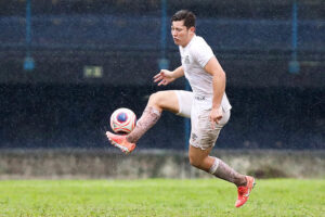 O zagueiro Victor Cruz fez o gol do Santos no empate com a Portuguesa (Crédito: Pedro Ernesto Guerra Azevedo/SantosFC)