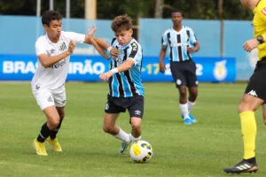O Santos empatou com o Grêmio em 2 a 2 pela partida de ida das semifinais do Campeonato Brasileiro Sub-17, na tarde desta quarta-feira (26). No CT Hélio Dourado, em Eldorado do Sul (RS), os gols santistas foram marcados por Rodrigo Cezar e Lucas Yan.