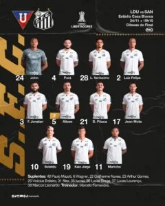 Escalação do Santos para o jogo contra a LDU (Crédito: Reprodução)