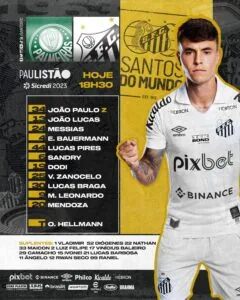 O Santos está escalado para o clássico de logo mais, às 18h30min, diante do Palmeiras, no Morumbi, pela sexta rodada do Paulistão 2023 com duas mudanças em relação ao time que começou a partida do último sábado diante da Ferroviária, no Canindé.