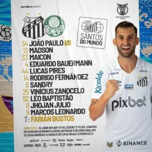 O Santos está escalado com João Paulo, Madson, Maicon, Eduardo Bauermann e Lucas Pires; Rodrigo Fernández, Vinícius Zanocelo, Sandry e Jhojan Julio; Léo Baptistão e Marcos Leonardo.