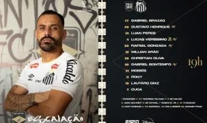 Escalação do Santos: Gabriel Brazão; Lucas Veríssimo, Willian Arão e Luan Peres; Rony, Christian Oliva, Gustavo Henrique, Gabriel Bontempo e Rafael Gonzaga; Moisés e Lautaro Díaz.
