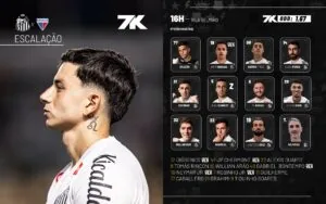 O Santos está escalado com Gabriel Brazão, Igor Vinícius, Adonis Frías, Luan Peres e Escobar; João Schmidt, Zé Rafael, Vitor Hugo e Rollheiser; Barreal e Lautaro Díaz.