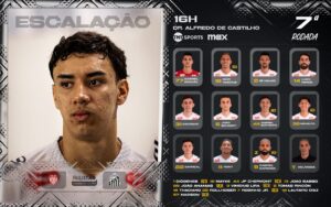 O Santos está escalado com Gabriel Brazão, Igor Vinícius, Zé Ivaldo, Luan Peres e Escobar; Jiçao Schmidt, Gabriel Bontempo e Barreal; Miguelito, Gabriel Barbosa e Rony.