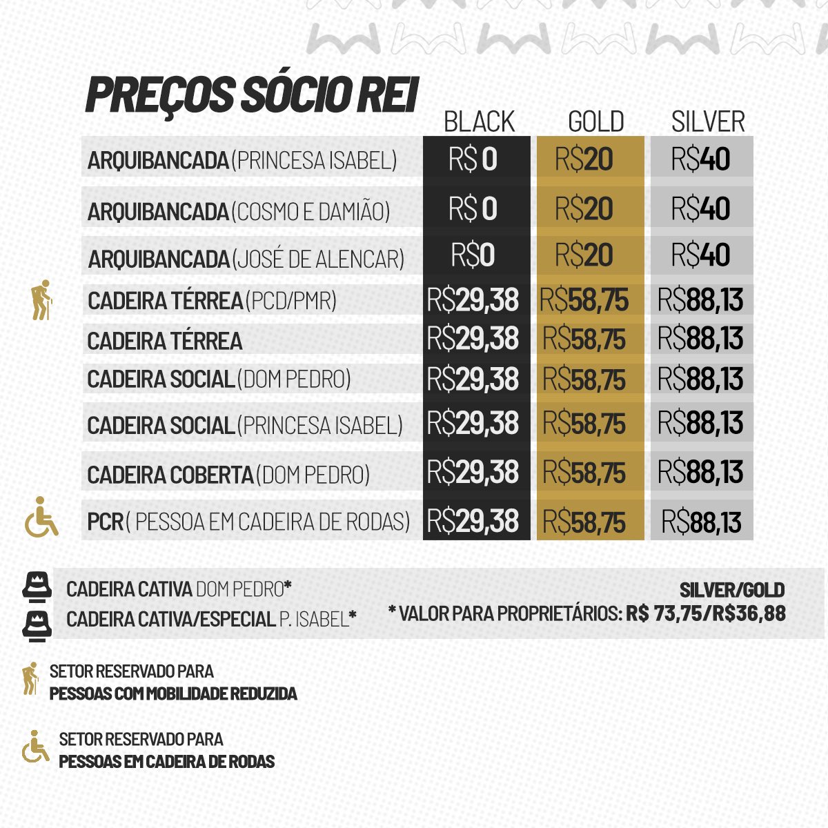 Os donos de cadeiras cativas e especiais precisarão comprar os ingressos antecipadamente. Não haverá mais o livre acesso com apresentação da carteirinha nas catracas.