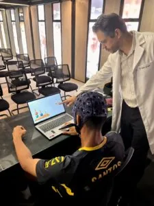 “A partir de 2026 contaremos com mais um serviço de excelência na área de saúde. Trata-se do laboratório de Neuromodulação, que será coordenado pelo especialista Ádan Jardim. Esse segmento, muito utilizado na Europa, e ainda muito raro em nosso meio, ajuda tanto na reabilitação, promovendo uma fase de recuperação mais bem aproveitada, como em treinamentos, estimulando a velocidade de decisão através de treinamentos cognitivos e por meios eletrônicos, que mimetizam situações reais de jogo como dribles chutes ou passes“ afirma o Dr. Rodrigo Zogaib, Coordenador Médico e da Área de Saúde do Santos.