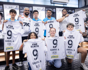 Após o encerramento da entrevista, o atacante encontrou os sócios no vestiário da Vila Belmiro, onde distribuiu camisas autografadas e posou para fotos, encerrando a experiência de forma exclusiva e próxima.