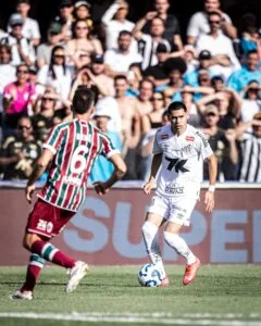 Caballero tenta a jogada no empate do Santos contra o Fluminense (Crédito: Raul Baretta/SantosFC)