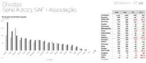 O relatório da Convocados, Outfield e Galapagos Capital sobre a situação financeira dos principais clubes do Brasil, divulgado nesta terça-feira (11), apontou que o Santos tem a 10ª maior dívida líquida do futebol brasileiro. De acordo com o relatório, a dívida do Peixe chegou em R$ 548 milhões no final de 2023, um crescimento de 14% em relação a 2022.