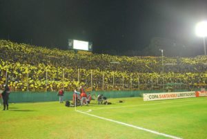 A torcida do Peñarol lotou o estádio Centenário na final da Libertadores de 2011, contra o Santos (Crédito: Santos FC)